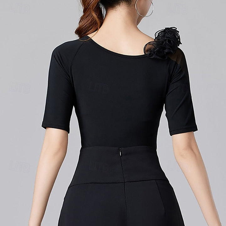 Danse Latine à Manches Courtes, Couleur Pure, Volants, Épissage, Entraînement de Performance pour Femmes