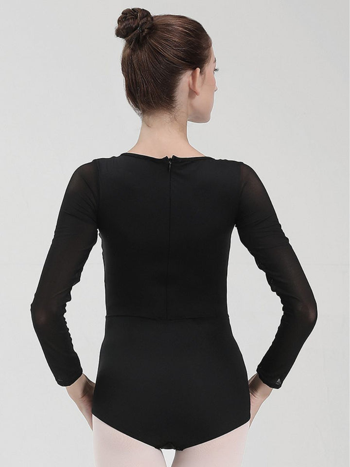 Justaucorps D'Entraînement en Tulle à Col Rond et Manches Longues pour le Ballet