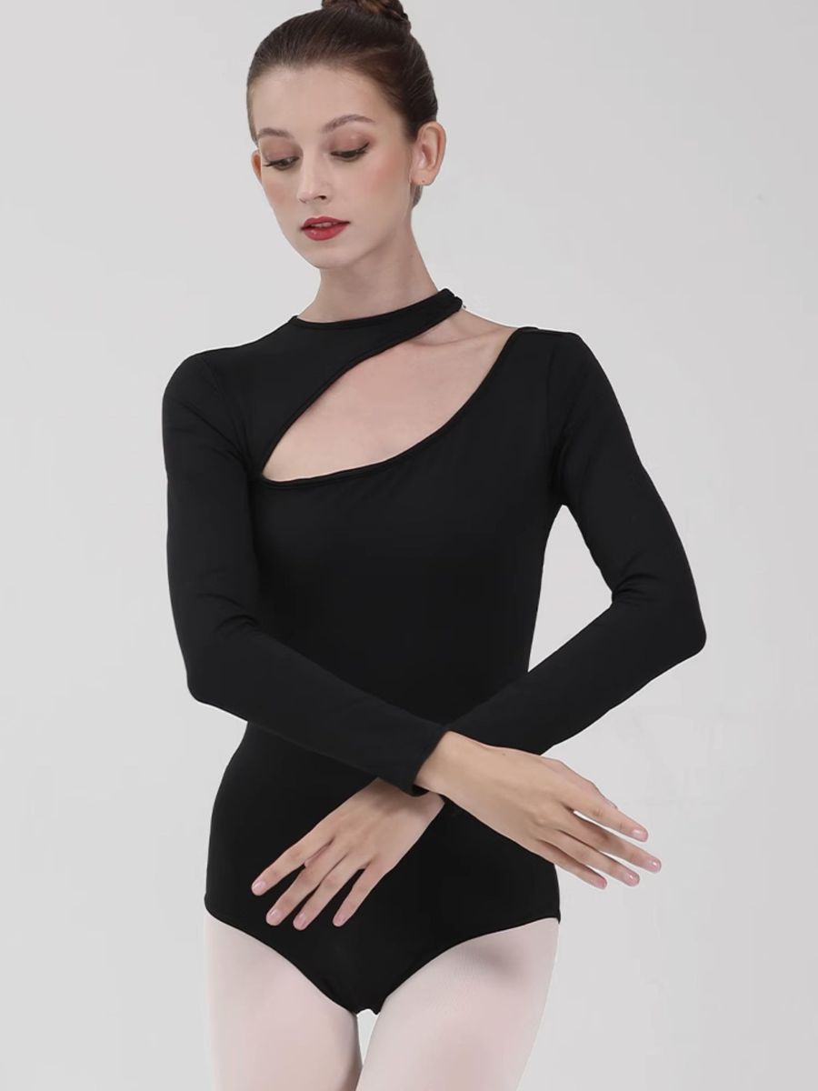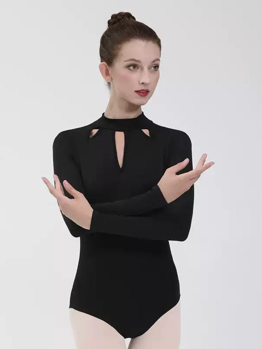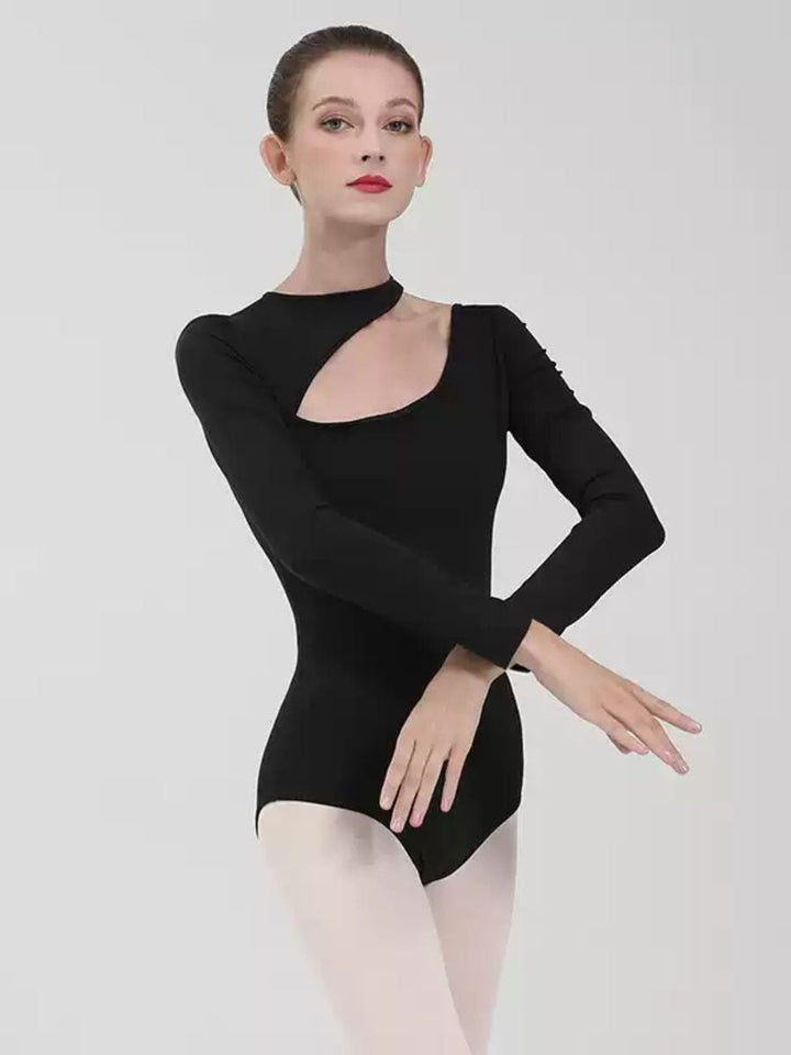 Justaucorps D'Entraînement Simple à Manches Longues et Col Licou pour Danse de Ballet