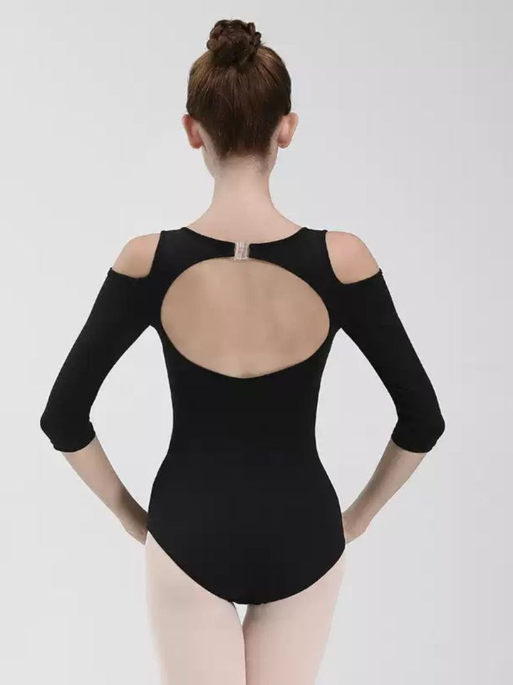 Combinaison D'Entraînement Basique de Danse de Ballet à Manches 3/4 et Col en V avec Dos Ouvert
