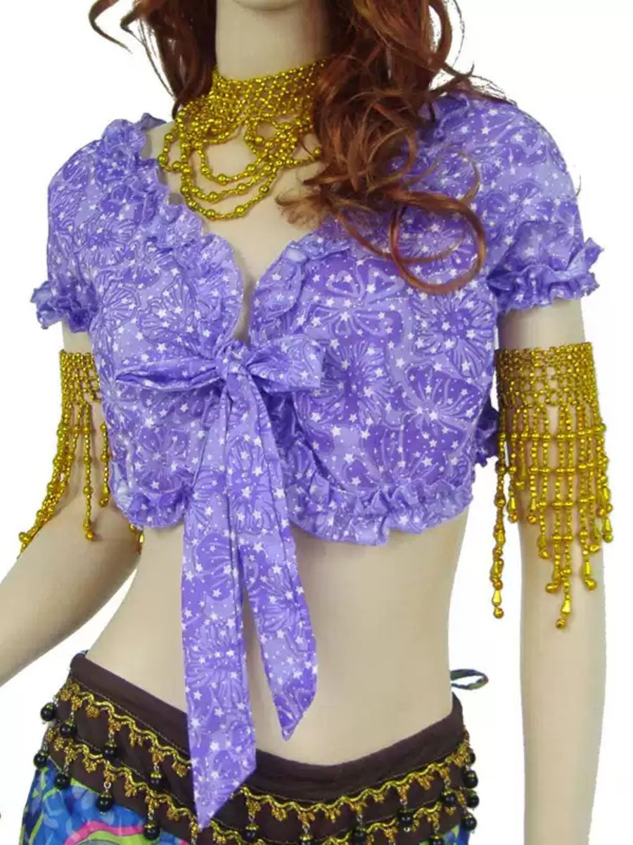 Costume de Danse Du Ventre à Manches Courtes avec Gilet Froncé et Cache-Cœur