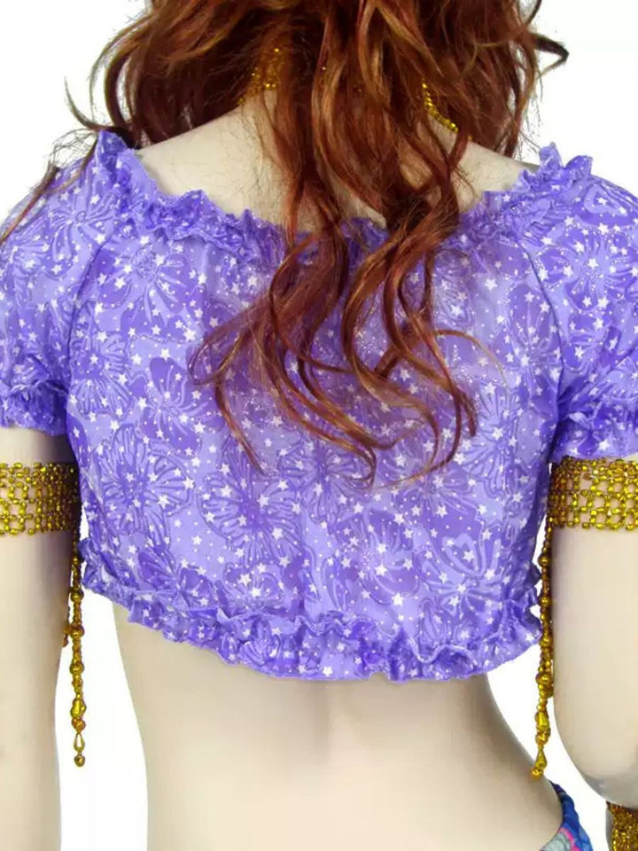 Haut Court Froncé à Manches Courtes et Col en V pour Danse Du Ventre avec Nœud(S) et Fleur Imprimée