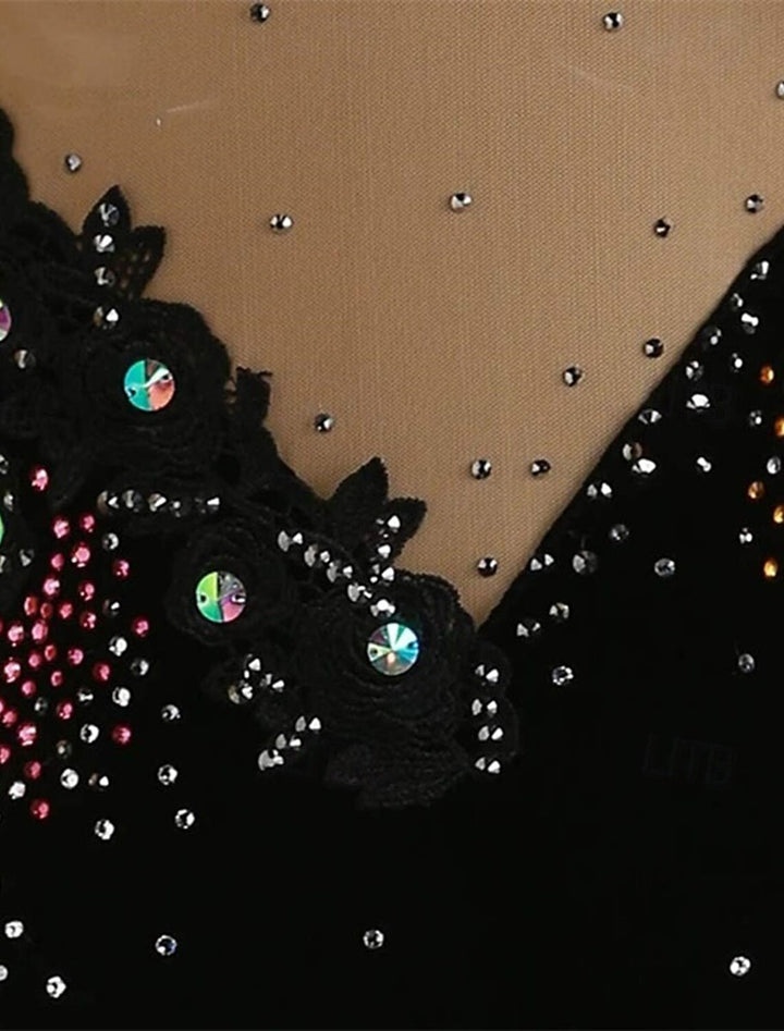 Robe de Patinage Artistique à Manches Longues pour Femmes et Filles, Tenue D'Entraînement Scintillante avec Strass