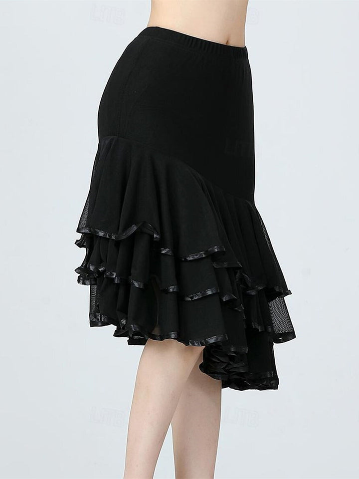Jupes de Danse de Salon de Danse Latine en Tulle Polyester à Volants Épissage de Couleur Pure Entraînement de Performance pour Femmes