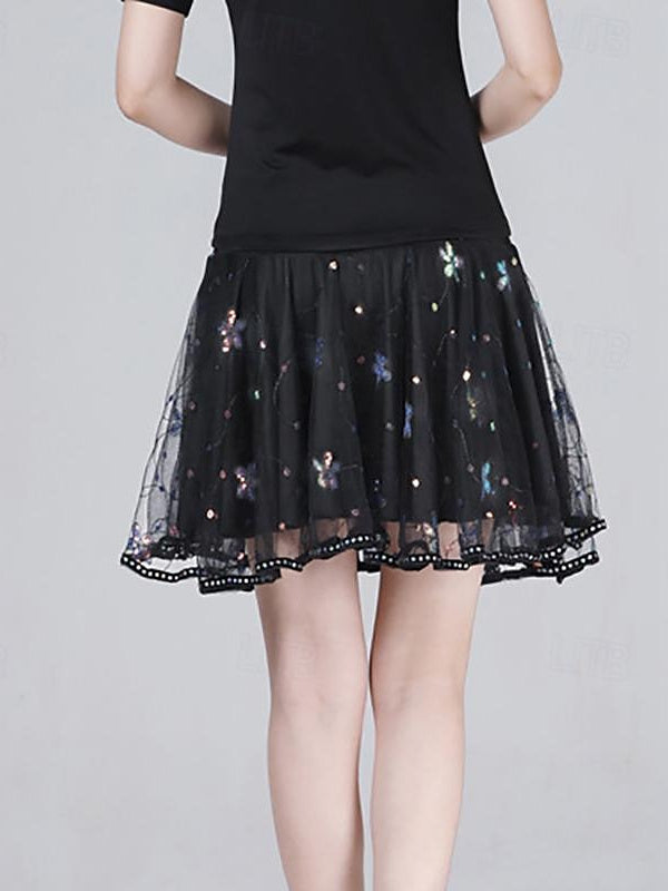Jupes de Danse de Salon de Danse Latine à Paillettes de Couleur Pure pour Femmes, Entraînement de Performance en Polyester de Haute Qualité