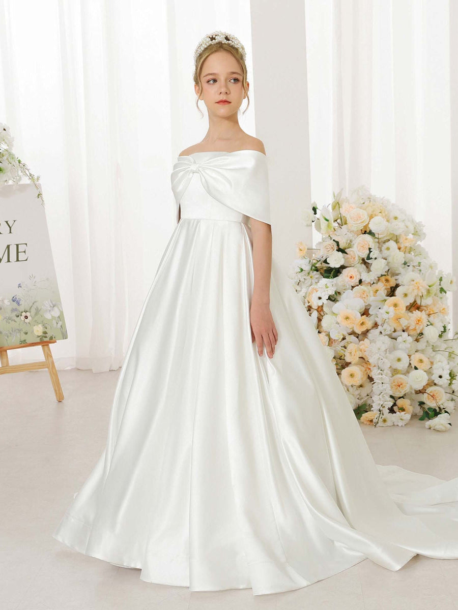 MON11112425 Robe de Demoiselle D'Honneur Empire en Satin à Manches Courtes et Épaules Dénudées