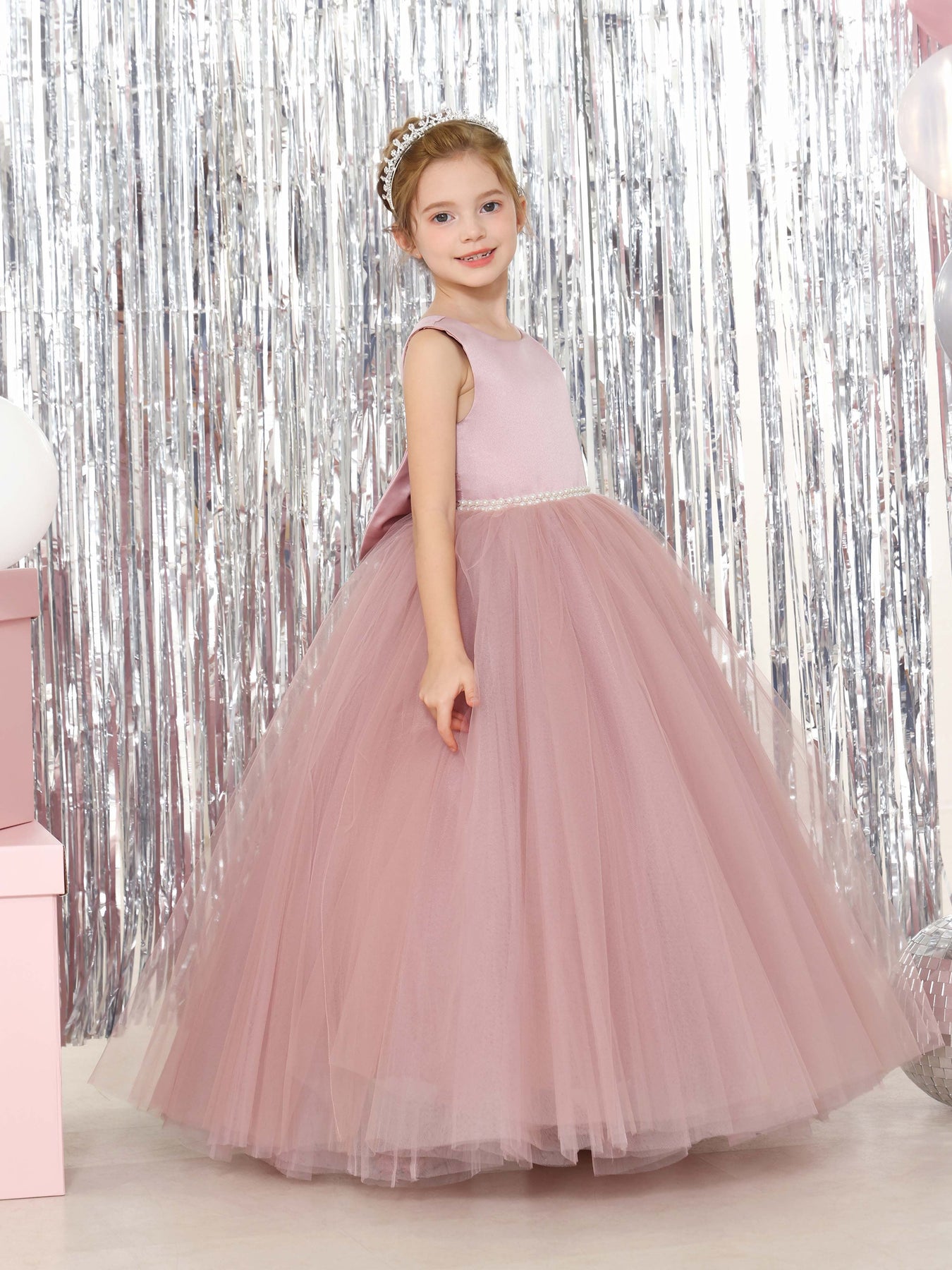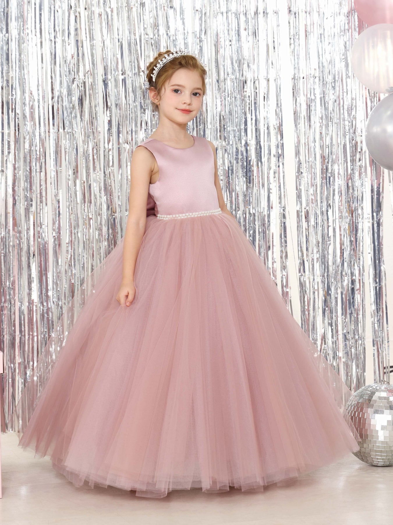 MON11112431 Robe de Bal en Tulle et Satin Sans Manches, Col Rond, Longueur Au Sol, Robes de Demoiselle D'Honneur