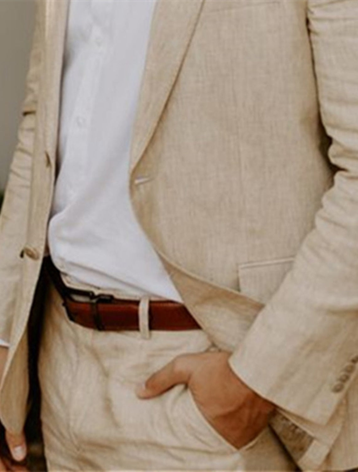 Costumes 2 Pièces en Lin de Couleur Unie à Simple Boutonnage et Deux Boutons pour Hommes, Coupe Ajustée