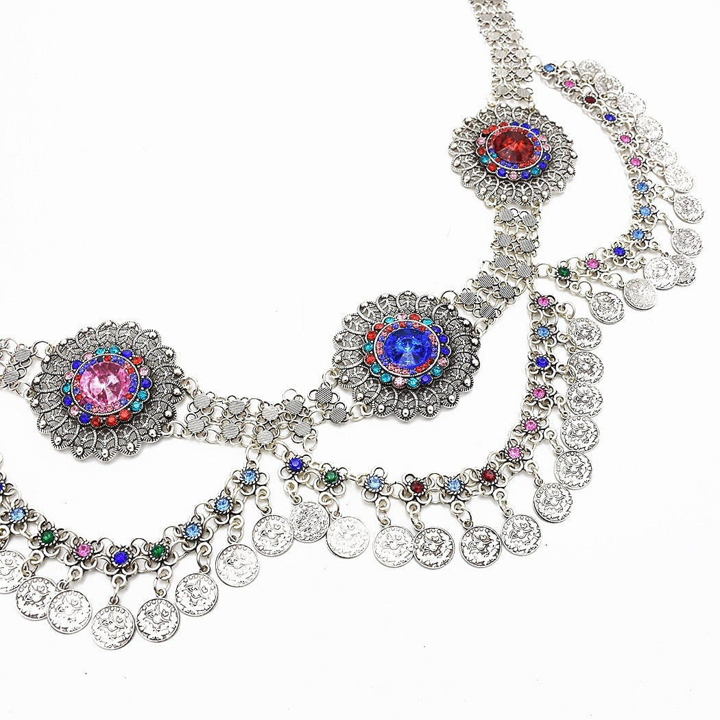 MON4041220W Accessoire de Taille de Danse Du Ventre Pompon pour Femme, Spectacle à Thème, Fête en Métal