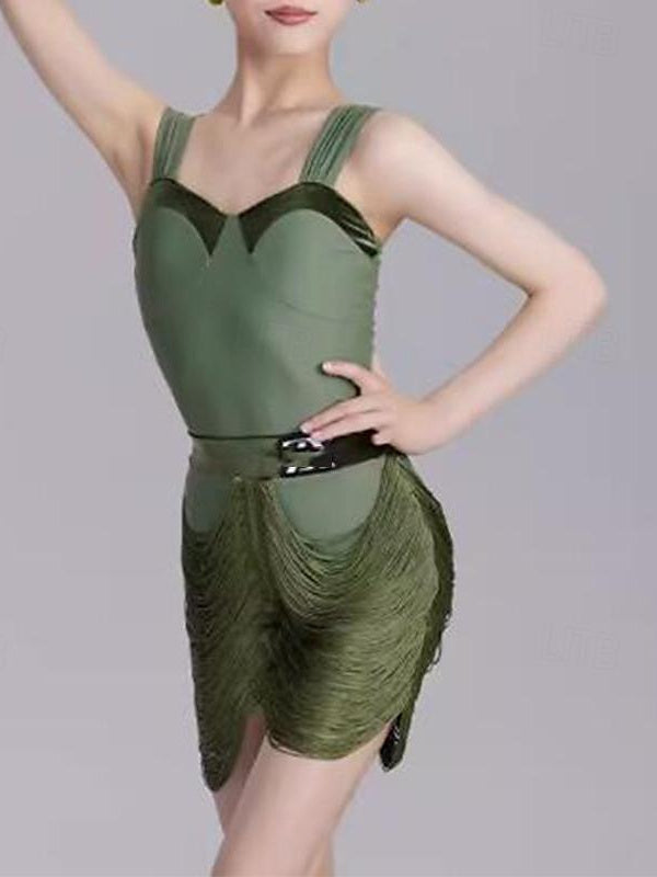 Vêtements de Danse pour Enfants Jupes en Élasthanne Sans Manches à Pompons pour Filles